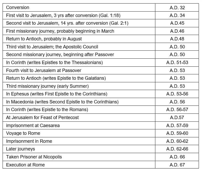 Appendix N: Paul’s Timeline _____________________________________________________________________________________________ Back to T301/501/701 Defense of the Faith Resources